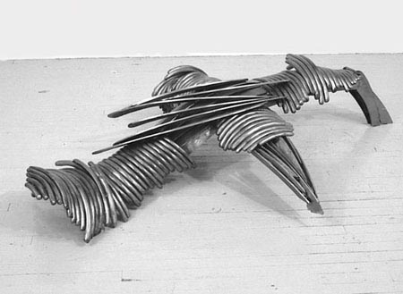 Materials: 3/4" cold rolled steel, 7/8" cold rolled steel solid round stock, 2" x 1/4" plate steel; clean brushed steel finish